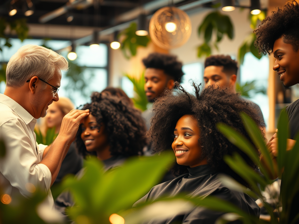 A stylish, eye-catching image featuring a modern salon setting, perhaps with a glimpse of happy clients or a luxurious detail like a gold-framed mirror or a beautiful plant. The image should evoke a sense of sophistication and welcome.