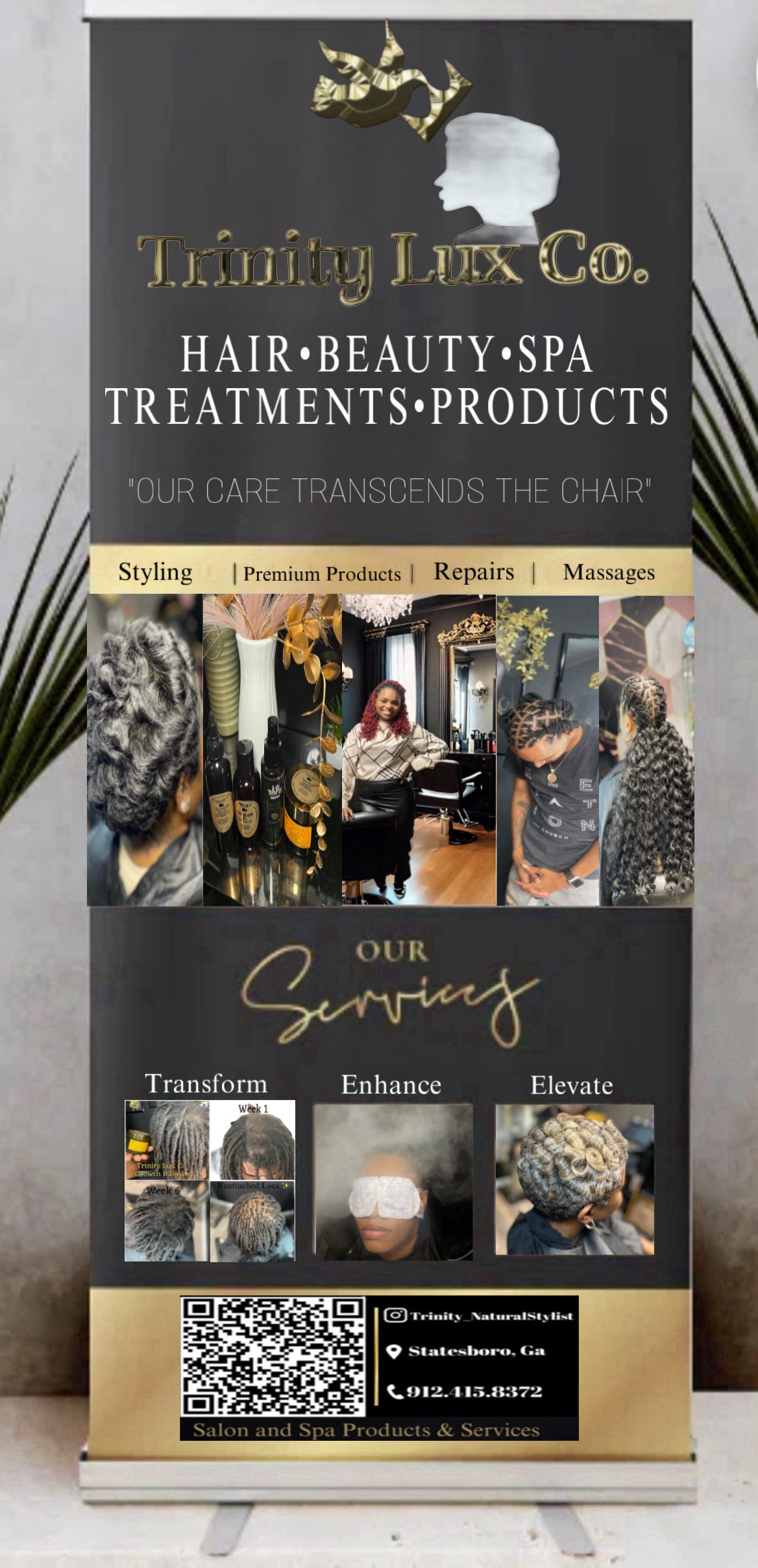 Dedicated entrepreneur and founder of Trinity Lux Company Salon and Spa, bringing over a decade of experience in natural haircare and wellness. With a strong foundation in business, communications, and leadership, I have built a thriving salon and beauty brand that emphasizes quality, luxury, and holistic care. I am skilled in business management, marketing, product development, and client relations, with a passion for creating meaningful connections and delivering exceptional services. My experience spans from hands-on expertise in hairstyling to crafting work orders, managing production in our warehouse, and developing a complete line of products, all focused on fostering a welcoming and luxurious client experience.