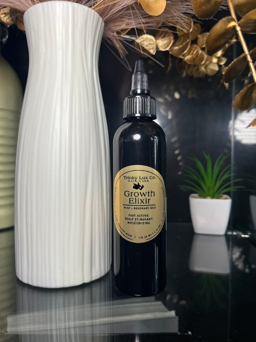 This product contains fast-acting, stimulating essentials. These are found in natural butters and oils. They encourage hair growth and increase thickness. They also help keep your scalp healthy.
